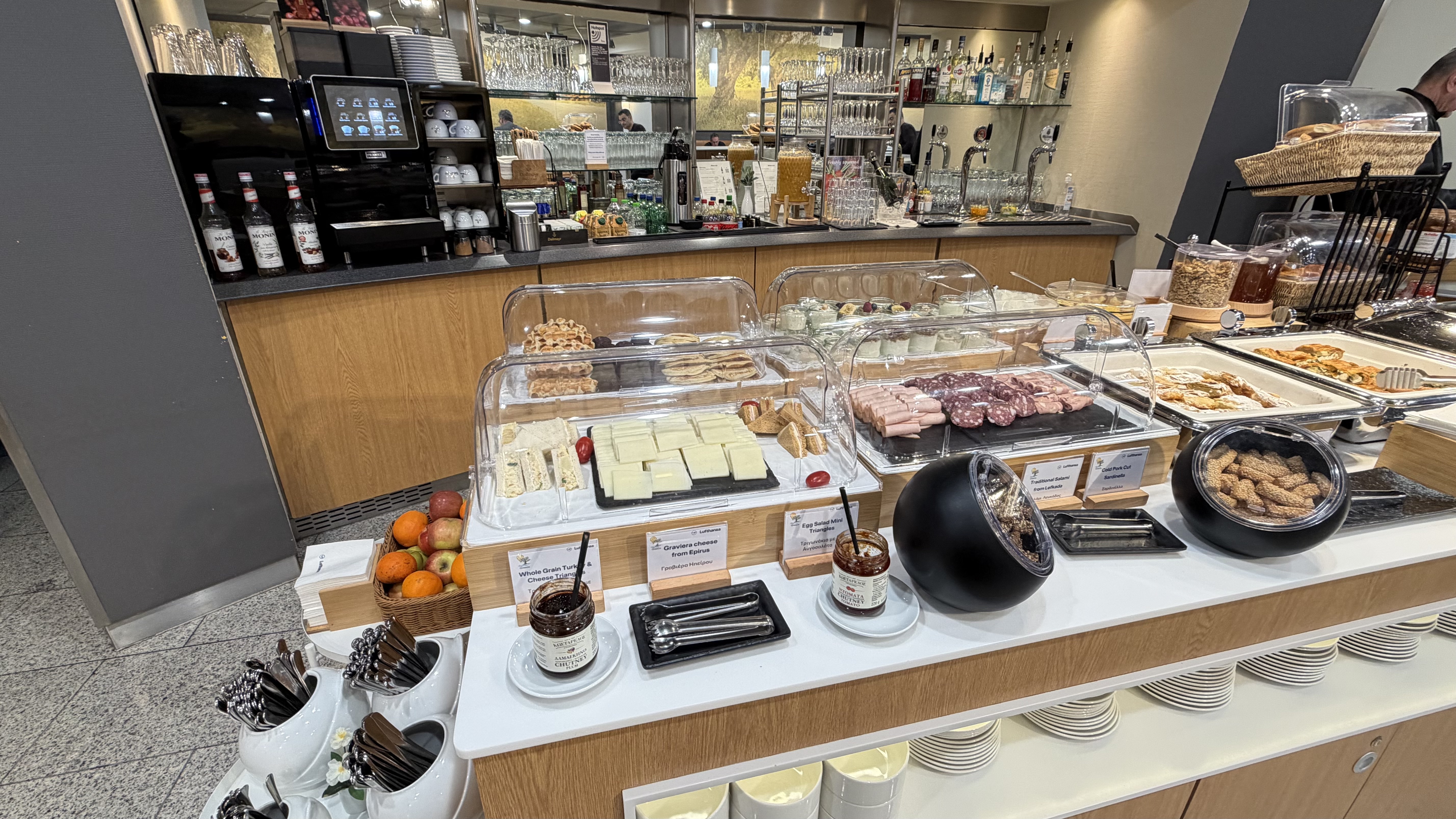 This morning started early: at 4:30am I took the shuttle from the HI to Athens Airport (ATH). With plenty of time before departure, I settled in for a proper breakfast at the Lufthansa Business Lounge at Gate B12.
