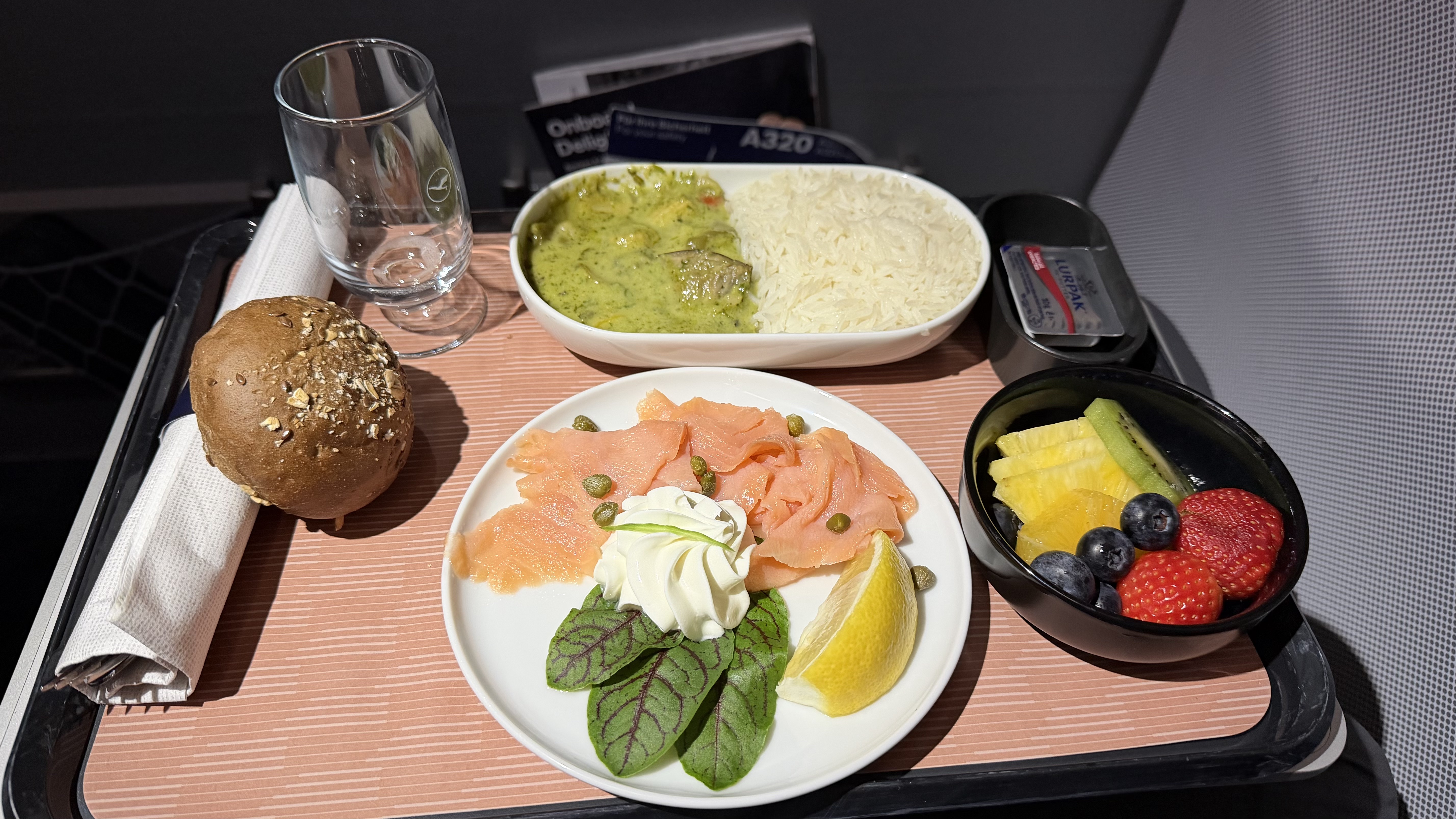 The following morning, I fly back to Athens on LH 1280 aboard a 31-year-old A321 (D-AIRC). Since I didn’t visit the lounge, I opt for breakfast on board instead.